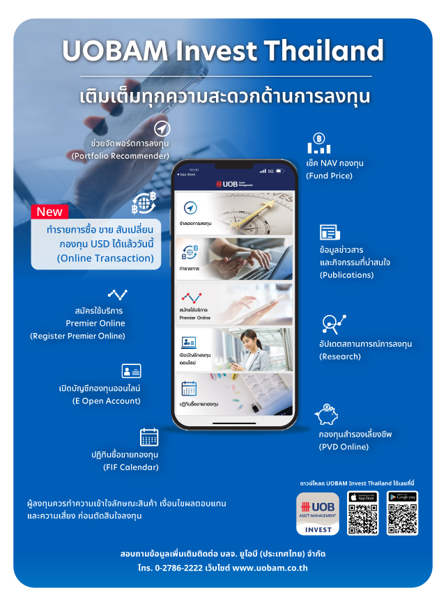ในช่วงครึ่งปีหลังของปี 2025 ตลาดโลกยังคงเผชิญกับความผันผวนจากปัจจัยหลายด้าน เช่น การปรับขึ้นของอัตราดอกเบี้ยของธนาคารกลาง การชะลอตัวของเศรษฐกิจ อย่างไรก็ตาม ตลาดหุ้นยังคงเป็นแหล่งสร้างผลตอบแทนที่น่าสนใจในระยะยาว โดยเฉพาะหุ้นของบริษัทที่มีพื้นฐานแข็งแกร่ง และสามารถรับมือกับความผันผวนได้ดี จากความท้าทายดังกล่าว ทางบลจ.ยูโอบี (ประเทศไทย) และเครือข่าย UOBAM Singapore นำโดยทีมผู้บริหาร คุณกุลฉัตร จันทวิมล กรรมการผู้จัดการ สายพัฒนาธุรกิจ (ลำดับแรกซ้าย), คุณธเนศ ฟังมงคล ผู้ช่วยกรรมการผู้จัดการ หัวหน้าฝ่ายธุรกิจตัวแทนขาย สายพัฒนาธุรกิจ (ลำดับ 2 จากขวา), คุณนนท์นลิน ทังสุนทร ผู้อำนวยการและพัฒนาผลิตภัณฑ์ สายพัฒนาธุรกิจ (ลำดับแรกขวา) และคุณ Shankar Panchadcharam, Senior Director, UOB Asset Management (Singapore) (ลำดับ 2 จากซ้าย) ร่วมมือกับผู้เชี่ยวชาญการลงทุนจาก Wellington Management ได้แก่ คุณ Jeremy H. Butterworth, CFA , Investment Strategist (ลำดับ 3 จากขวา), คุณ Andre Desautels, Portfolio Manager (กลาง) และ คุณ Chia Chia Chng, Business Development, Global Wealth (ลำดับ 2 จากซ้าย) มาร่วมแชร์มุมมองการลงทุนปี 2025 รวมทั้งแนวโน้มเศรษฐกิจ กลยุทธ์และแนวทางการปรับพอร์ตการลงทุนที่ได้สะท้อนและพิสูจน์ถึงผลตอบแทนที่ยั่งยืนในช่วง 10 ปีที่ผ่านมา รวมถึงโอกาสการลงทุนใน กองทุนเปิด ยูไนเต็ด โกลบอล ดูเรเบิ้ล อิควิตี้ ฟันด์ (UGD) โดยงานสัมมนาจัดขึ้นที่ โรงแรม The Ritz-Carlton, Bangkok เมื่อวันที่ 29 สิงหาคม 2568 ที่ผ่านมากองทุนเปิด ยูไนเต็ด โกลบอล ดูเรเบิ้ล อิควิตี้ ฟันด์ (UGD) ลงทุนในกองทุน United Global Durable Equities Fund – Class USD ACC กองทุนหลักจัดตั้งและบริหารจัดการโดย UOB Asset Management Ltd. (Singapore) กองทุนหลักมีเน้นลงทุนในหุ้นของบริษัทที่มั่นคง (durable companies) ที่ให้กำไรทบต้นอย่างสม่ำเสมอแก่ผู้ลงทุนโดยมีระดับความผันผวนของผลตอบแทนที่ต่ำกว่าระดับค่าเฉลี่ยของบริษัททั่วไปข้อมูลเพิ่มเติม https://www.uobam.co.th/th/mutual-fund/00425/UGD -