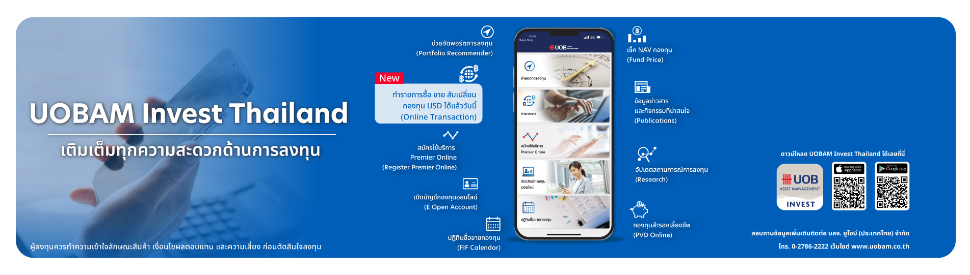 ในช่วงครึ่งปีหลังของปี 2025 ตลาดโลกยังคงเผชิญกับความผันผวนจากปัจจัยหลายด้าน เช่น การปรับขึ้นของอัตราดอกเบี้ยของธนาคารกลาง การชะลอตัวของเศรษฐกิจ อย่างไรก็ตาม ตลาดหุ้นยังคงเป็นแหล่งสร้างผลตอบแทนที่น่าสนใจในระยะยาว โดยเฉพาะหุ้นของบริษัทที่มีพื้นฐานแข็งแกร่ง และสามารถรับมือกับความผันผวนได้ดี จากความท้าทายดังกล่าว ทางบลจ.ยูโอบี (ประเทศไทย) และเครือข่าย UOBAM Singapore นำโดยทีมผู้บริหาร คุณกุลฉัตร จันทวิมล กรรมการผู้จัดการ สายพัฒนาธุรกิจ (ลำดับแรกซ้าย), คุณธเนศ ฟังมงคล ผู้ช่วยกรรมการผู้จัดการ หัวหน้าฝ่ายธุรกิจตัวแทนขาย สายพัฒนาธุรกิจ (ลำดับ 2 จากขวา), คุณนนท์นลิน ทังสุนทร ผู้อำนวยการและพัฒนาผลิตภัณฑ์ สายพัฒนาธุรกิจ (ลำดับแรกขวา) และคุณ Shankar Panchadcharam, Senior Director, UOB Asset Management (Singapore) (ลำดับ 2 จากซ้าย) ร่วมมือกับผู้เชี่ยวชาญการลงทุนจาก Wellington Management ได้แก่ คุณ Jeremy H. Butterworth, CFA , Investment Strategist (ลำดับ 3 จากขวา), คุณ Andre Desautels, Portfolio Manager (กลาง) และ คุณ Chia Chia Chng, Business Development, Global Wealth (ลำดับ 2 จากซ้าย) มาร่วมแชร์มุมมองการลงทุนปี 2025 รวมทั้งแนวโน้มเศรษฐกิจ กลยุทธ์และแนวทางการปรับพอร์ตการลงทุนที่ได้สะท้อนและพิสูจน์ถึงผลตอบแทนที่ยั่งยืนในช่วง 10 ปีที่ผ่านมา รวมถึงโอกาสการลงทุนใน กองทุนเปิด ยูไนเต็ด โกลบอล ดูเรเบิ้ล อิควิตี้ ฟันด์ (UGD) โดยงานสัมมนาจัดขึ้นที่ โรงแรม The Ritz-Carlton, Bangkok เมื่อวันที่ 29 สิงหาคม 2568 ที่ผ่านมา กองทุนเปิด ยูไนเต็ด โกลบอล ดูเรเบิ้ล อิควิตี้ ฟันด์ (UGD) ลงทุนในกองทุน United Global Durable Equities Fund – Class USD ACC กองทุนหลักจัดตั้งและบริหารจัดการโดย UOB Asset Management Ltd. (Singapore) กองทุนหลักมีเน้นลงทุนในหุ้นของบริษัทที่มั่นคง (durable companies) ที่ให้กำไรทบต้นอย่างสม่ำเสมอแก่ผู้ลงทุนโดยมีระดับความผันผวนของผลตอบแทนที่ต่ำกว่าระดับค่าเฉลี่ยของบริษัททั่วไป ข้อมูลเพิ่มเติม https://www.uobam.co.th/th/mutual-fund/00425/UGD -